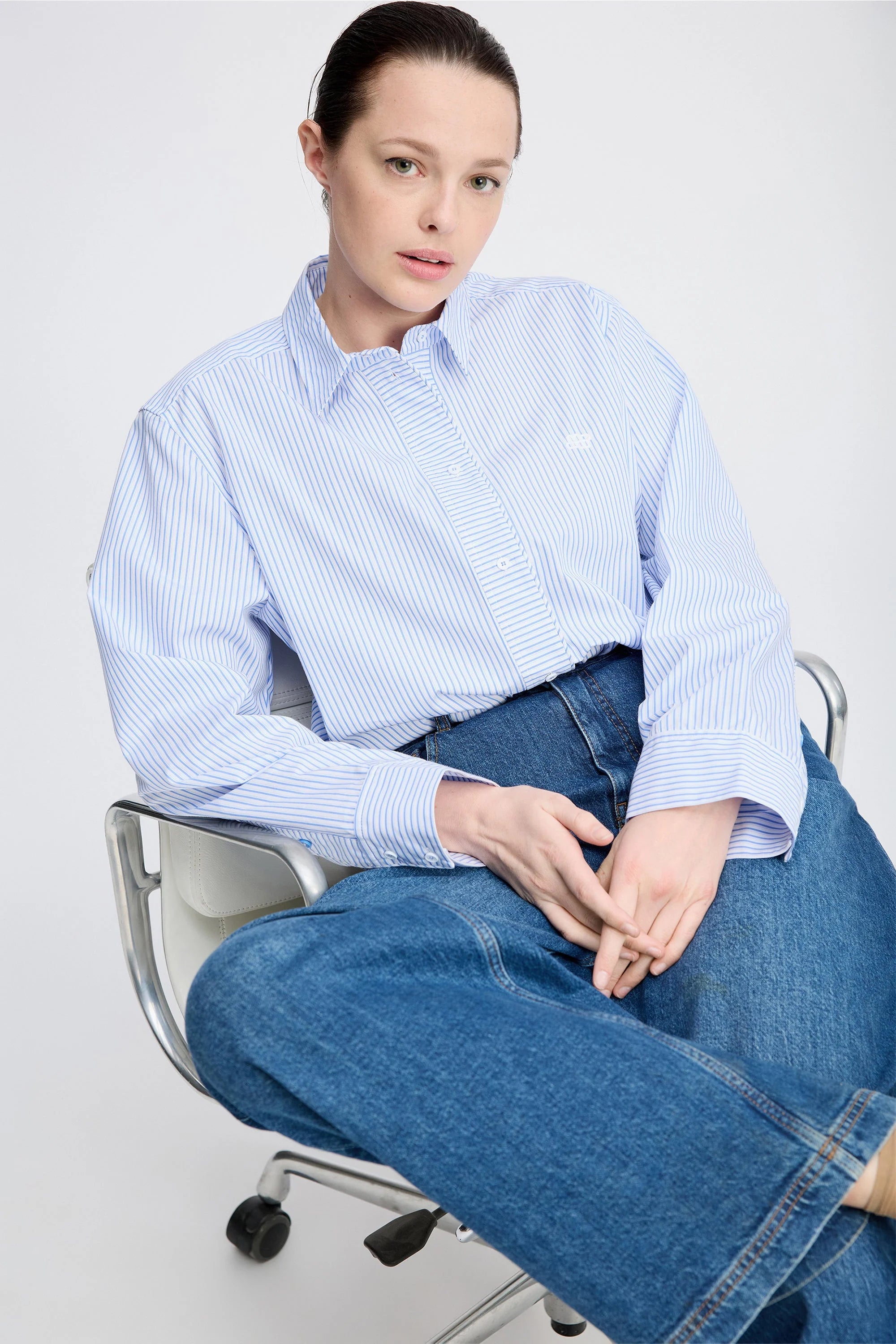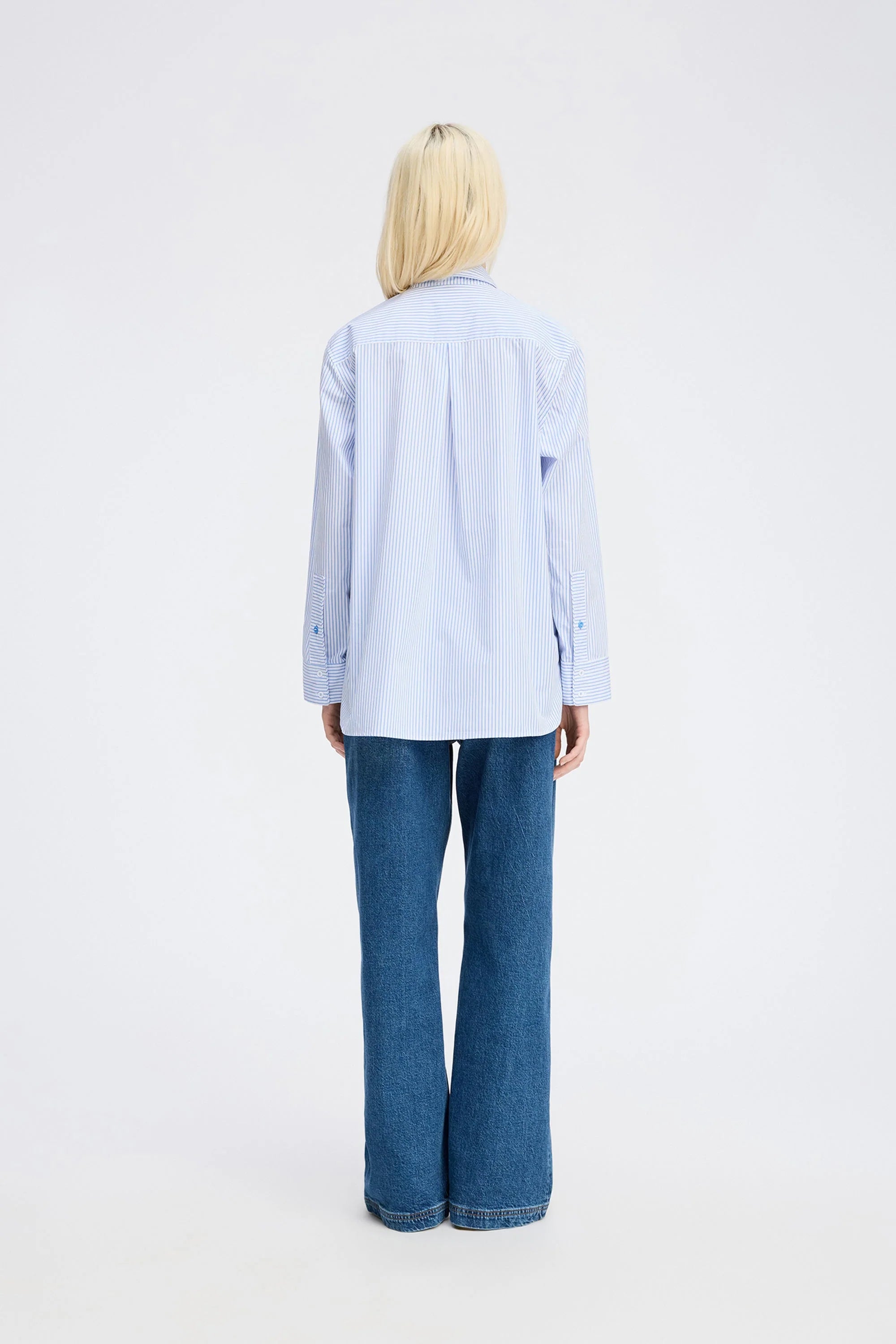 Callima Blouse in de kleur 'Light Blue' van het Deense merk Munthe. Een blouse met prachtige krijtstrepen die elegant gedraaid zijn en horizontaal langs de knoopsluiting lopen. Deze blouse heeft lange mouwen met stijlvolle manchetten en is ontworpen voor een losse pasvorm. Gemaakt van heerlijk en mooi katoen!