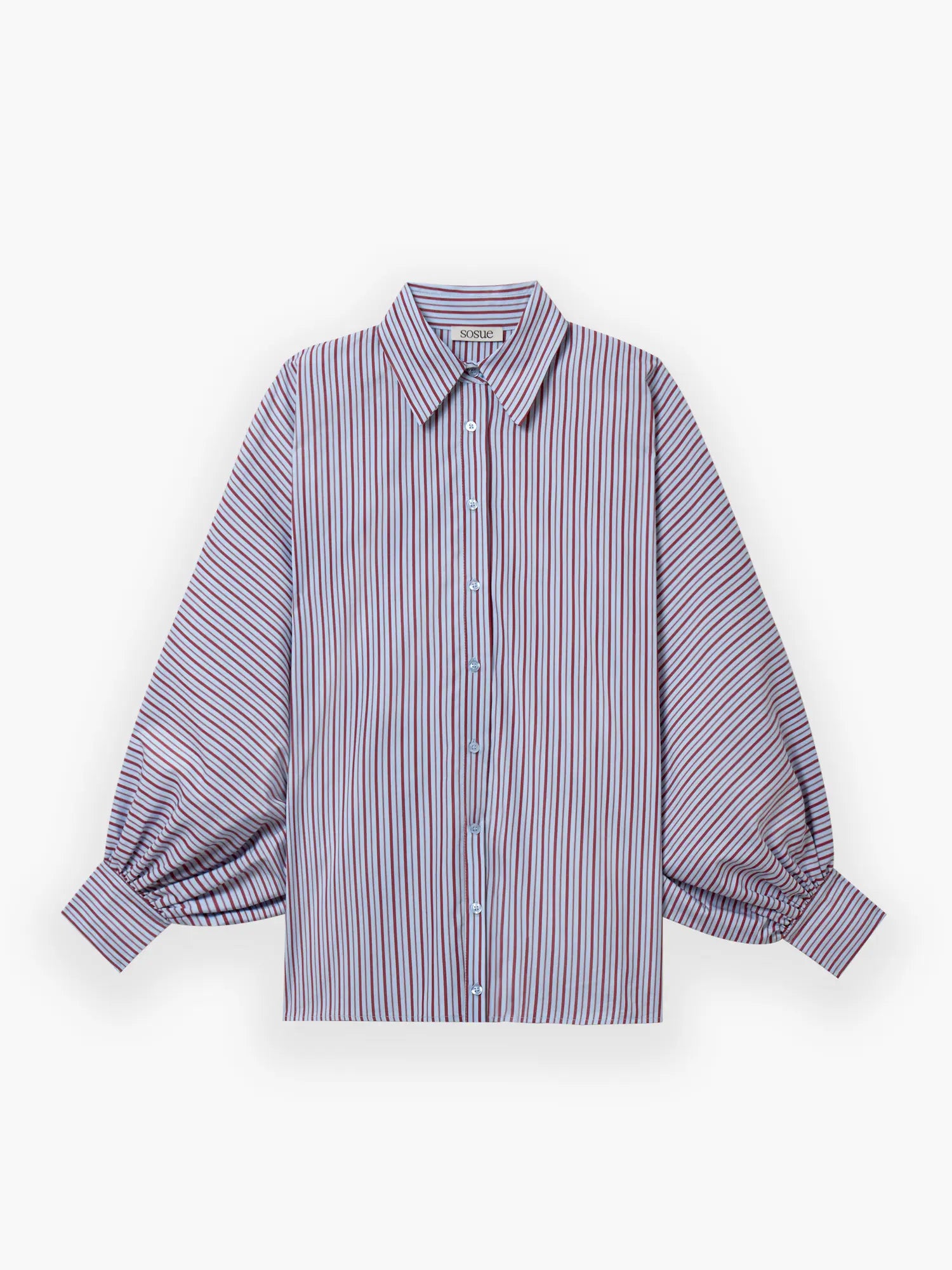 Antonia Polo Blouse - Blue/ Burgundy Stripe