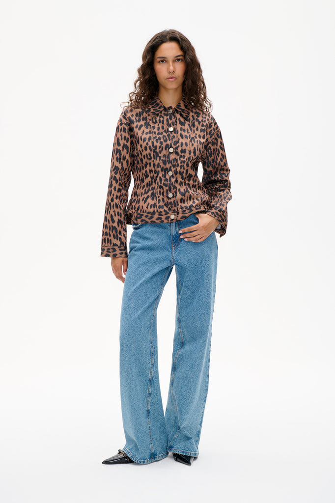 Bene Jacket in de kleur 'Dark Brown Leopard' van het Deense merk Baum und Pferdgarten. Mooi tailored jasje met knoopsluiting en kraag.