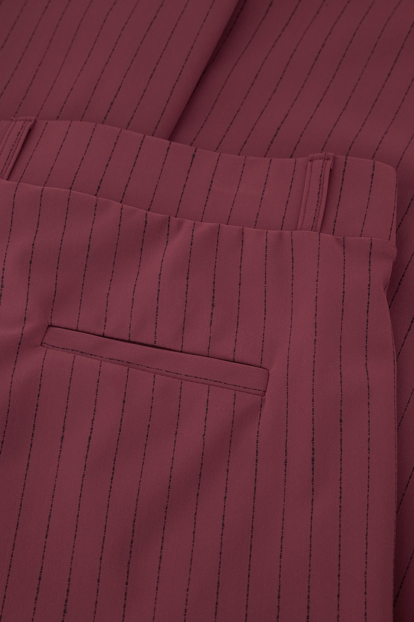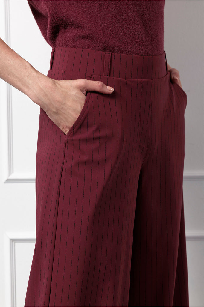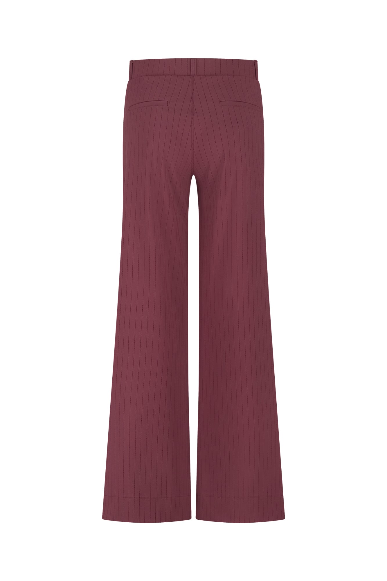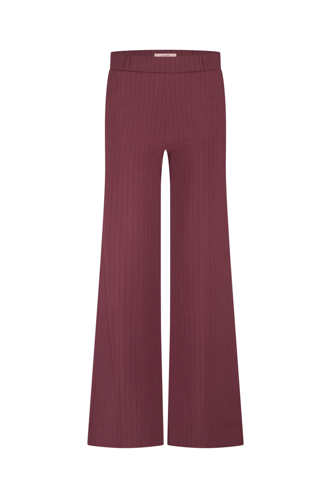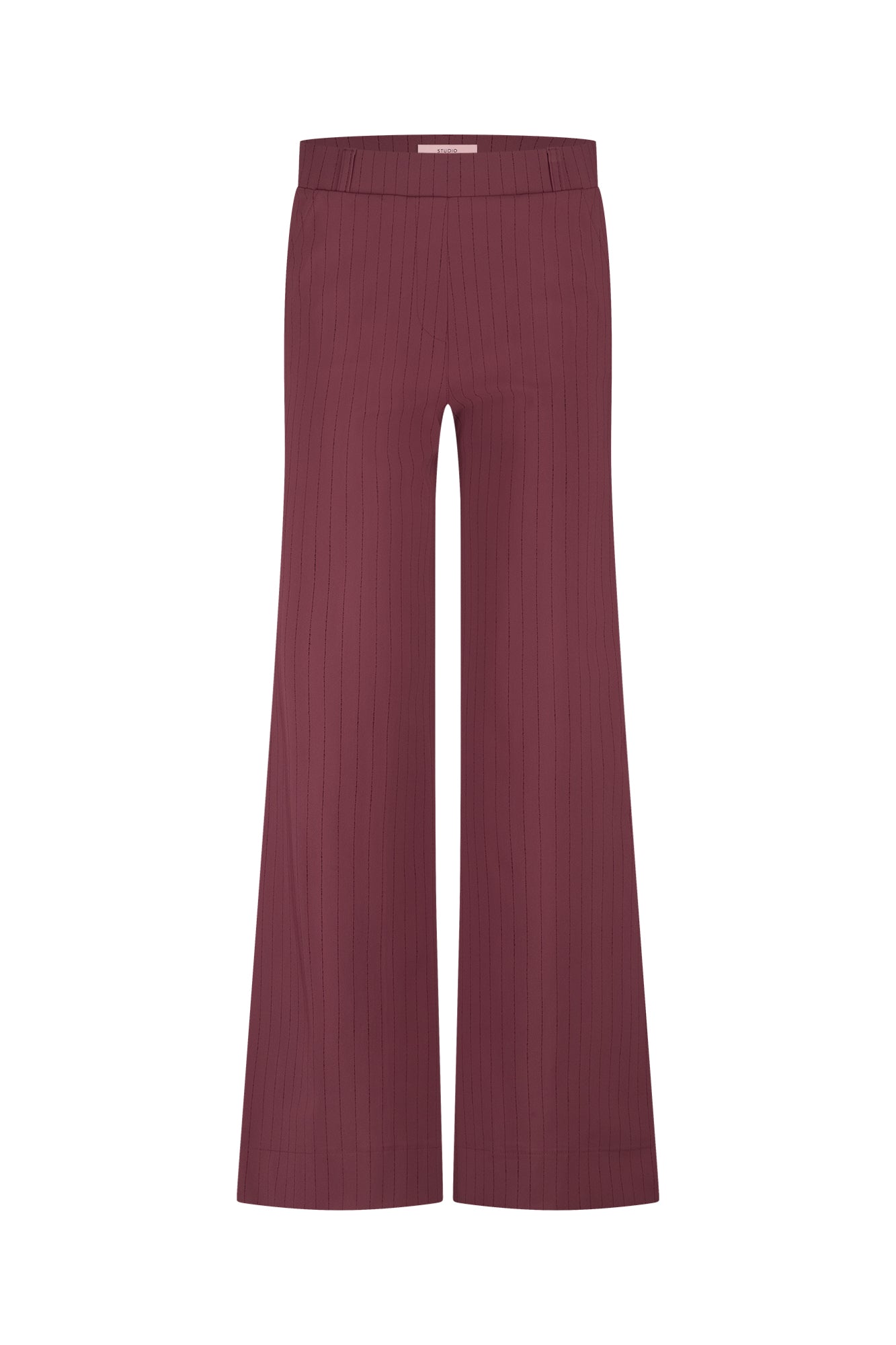 Luz Stripe Trousers in de kleur 'Bordeaux' van het Nederlandse merk Studio Anneloes. Deze mooie wide leg broek heeft een elastieke band, steekzakken en een mooi subtiel pinstripe printje. De stof is gemaakt van travel kwaliteit en draagt heel comfortabel en is kreukvrij!