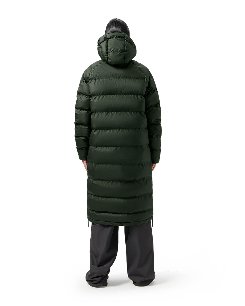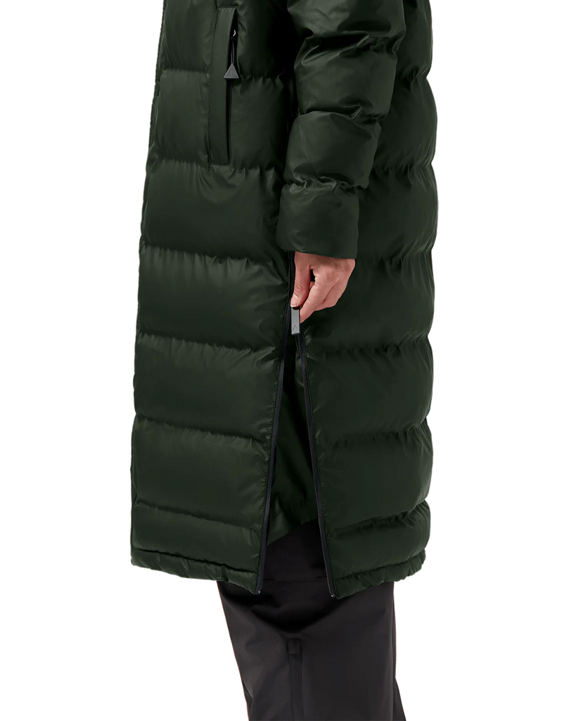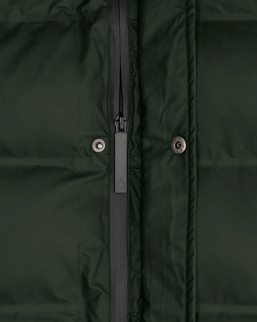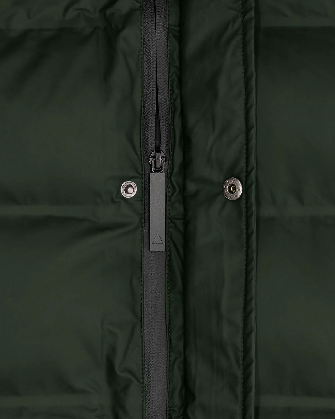 De oversized Puffer in de kleur 'Dark Oak' voor dames is een volledig waterdichte winterjas. Verandert eenvoudig in een poncho voor op de fiets of scooter. Ja, deze jas is vegan – zowel de stof als de vulling zijn gemaakt van 99 gerecyclede plastic flessen.