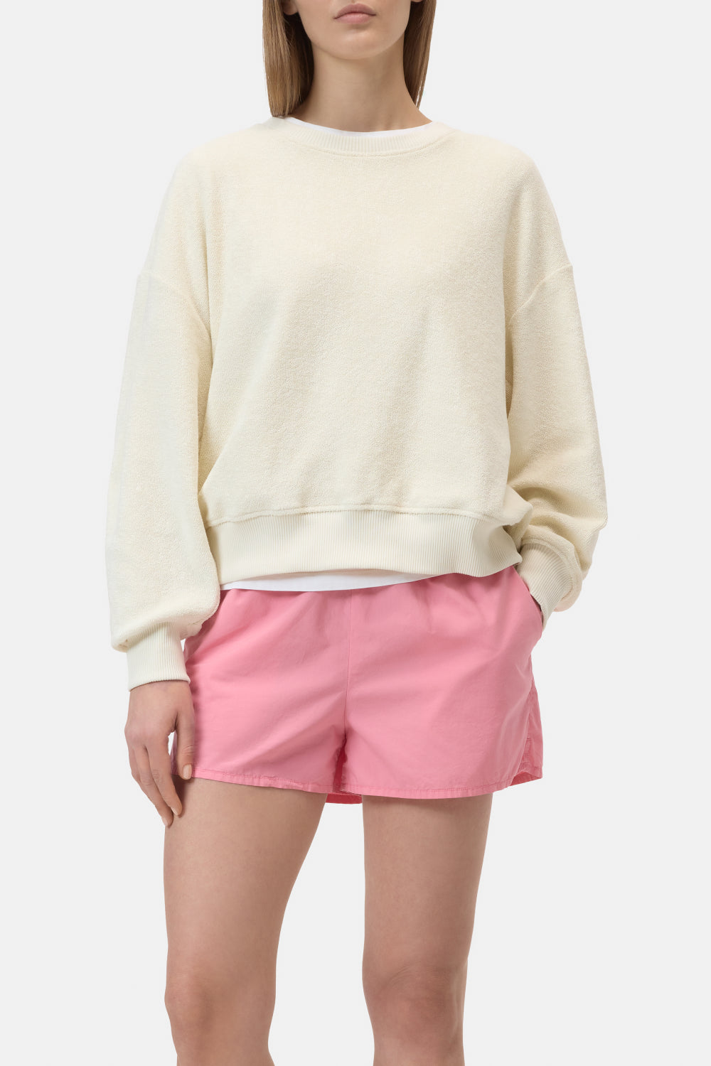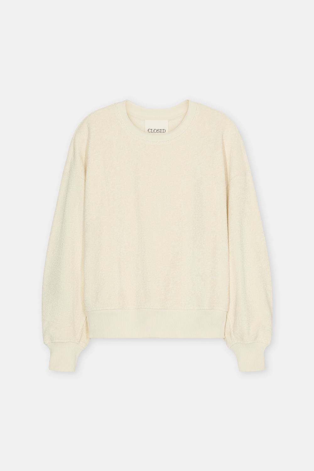 Deze sweater met een relaxte pasvorm en normale lengte zorgt voor een casual look. Kenmerkende details zijn de geribde ronde hals, geribde manchetten, het Closed flag-label aan de zijkant en de plooien op de achterkant van de mouw. Gemaakt in Portugal.