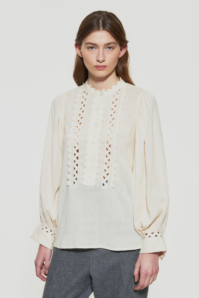 Antonia Polo Blouse - Blue/ Burgundy Stripe