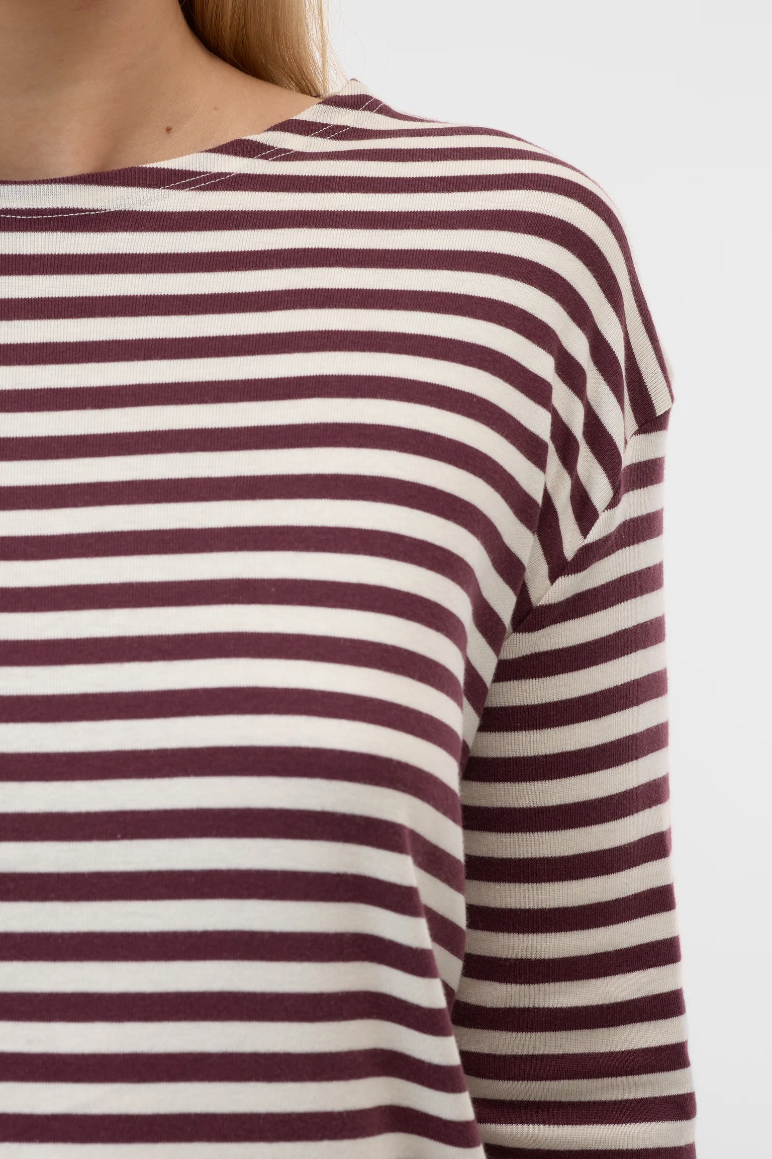 Basic Longsleeve in de kleur 'Dark Raisin Red' van het merk Closed. Het shirt met lange mouwen heeft een normale pasvorm en een klassieke ronde hals. Gemaakt van fijne ribjersey, een combinatie van katoen en modal, voelt het uitzonderlijk zacht aan op de huid. Op de zijnaad zit nog een klein label van closed en voegt een verfijnd, kenmerkend detail toe. Bij ons verkrijgbaar in drie mooie kleuren; Dark Raisin Red, Galaxy Blue & Nordic Blue.