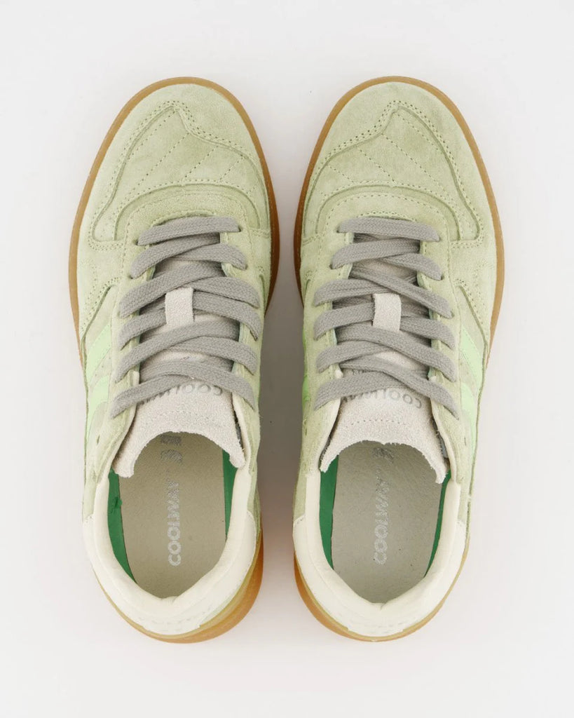 De Goal sneaker van het merk Coolway in de kleur Pistachio. Deze leren sneakers zijn super comfortabel en stijlvol. De sneaker heeft contrasterende kleurdetails en een voorgevormde leren tong met padding. De zolen zijn zacht en super comfortabel. De inlegzolen zijn uitneembaar.