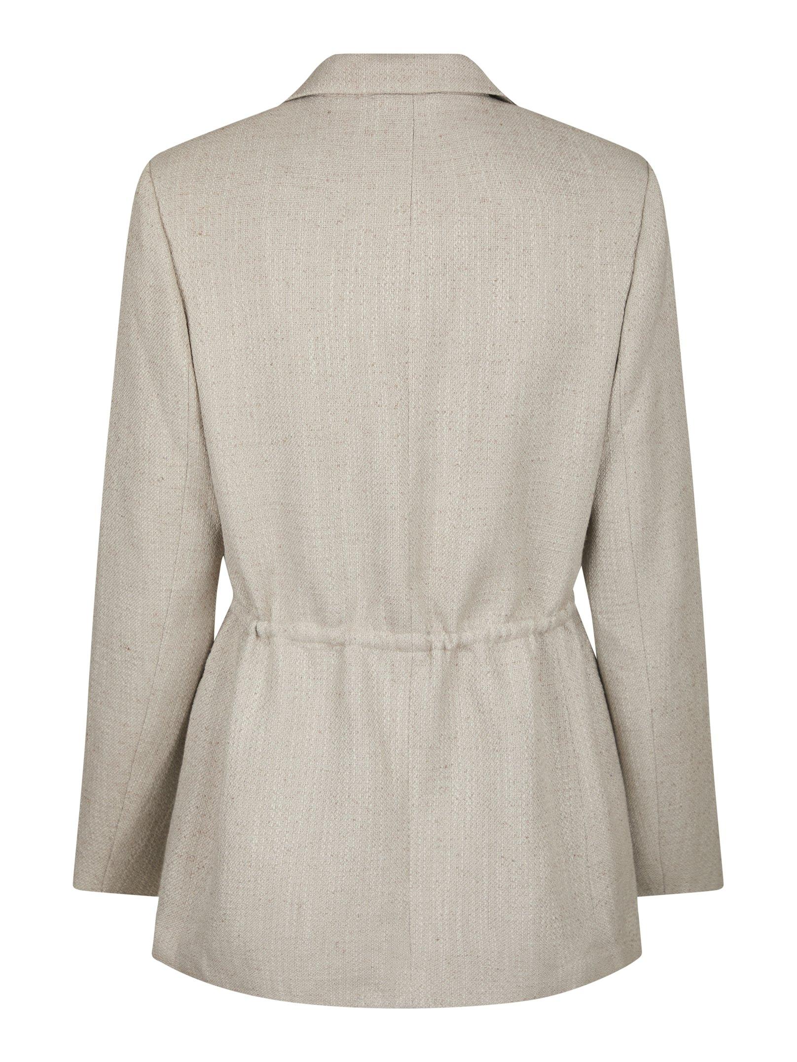 Jemmie Boucle Blazer van het Deense merk Neo Noir in de kleur 'Natural'. Blazerjasje van mooie bouclé-kwaliteit. Het jasje heeft strikbanden voor een moderne, elegante look. Volledig gevoerd. Het model is 176 cm lang en draagt maat 36.